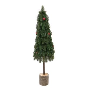Елка литая на деревянной зеленой подставке с красными шариками 62 см.