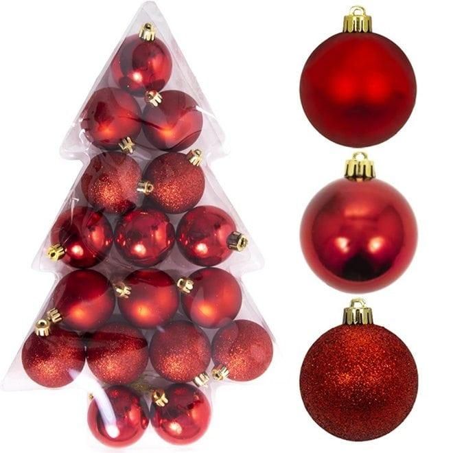 Набор пластиковых елочных шаров, цвет – красный, 17 шт. диаметром – 5 см: глянцевый – 6 шт. матовый – 5 шт. глиттер – 6 шт.