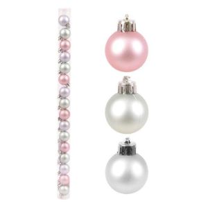 Набор пластиковых елочных шаров, цвет – серебряный матовый – 5 шт. розовый матовый – 5 шт. мятный матовый – 6 шт. диаметром – 3 см.