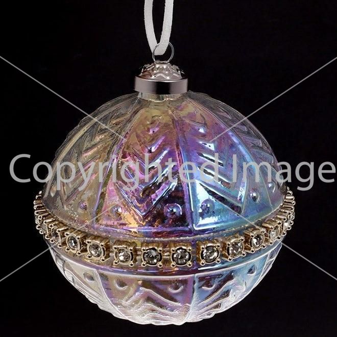 Набір новорічних скляних підвісок з рельєфним візерунком та декором з каміння, 10 см, колір - діамантовий прозорий.