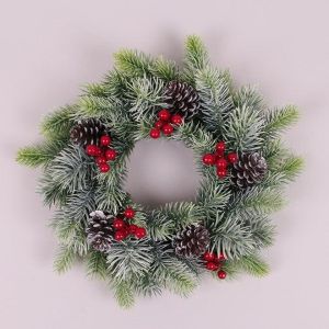 Вінок Новорічний з червоними ягідками 30 см. 75923