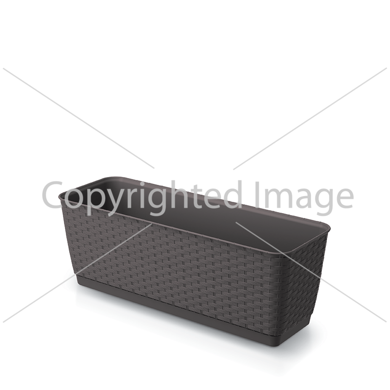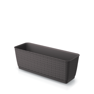 Балконный ящик Ratolla P – изготовлен из качественного пластика, устойчив к воздействию солнечных лучей и влаги. Он легок и устойчив, имеет модный дизайн и украшение в спокойных тонах. Фактура ротанга придает горшку вид натурального изделия, приносит атмосферу тепла и тишину. Он подойдет для декорирования террасы, балкона, кафе или квартиры.