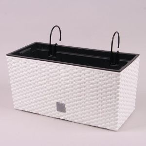 Цветочный горшок с вкладом и креплением RATO CASE - изготовлен из качественного пластика, устойчивого к воздействию солнечных лучей и влаги. Он легок и устойчив, имеет модный дизайн и расцветку в спокойных тонах. Фактура ротанга придает горшку вид натурального изделия, приносит атмосферу тепла и уюта. Внутренний вклад сделает посадку растения и уход за ней легче и удобнее. Используя входящие в комплект крепления, горшок можно повесить на перилах. Горшок отлично смотрится на уличных подоконниках.