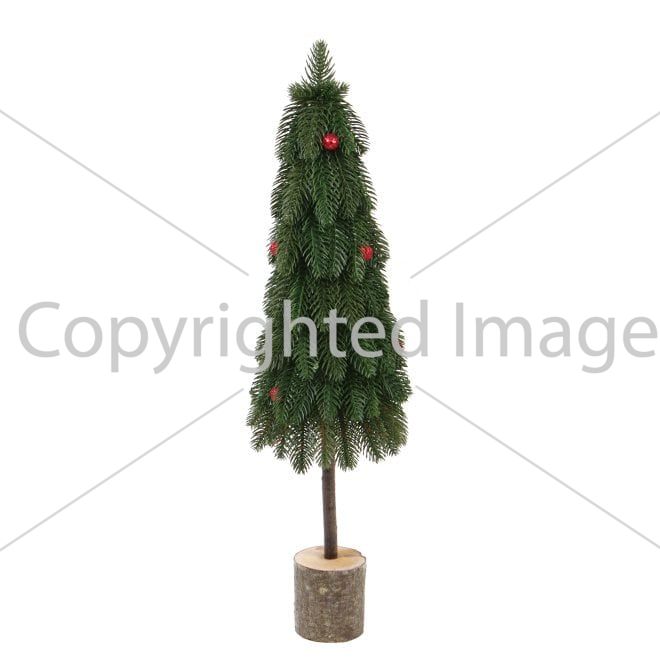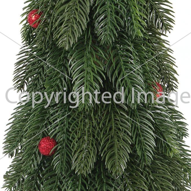 Елка литая на деревянной зеленой подставке с красными шариками 62 см.