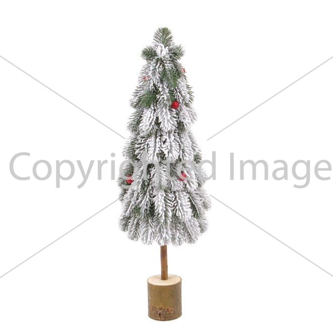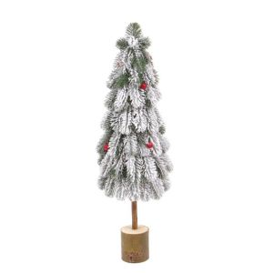 Елка литая на деревянной подставке заснеженная с красными шариками 62 см.