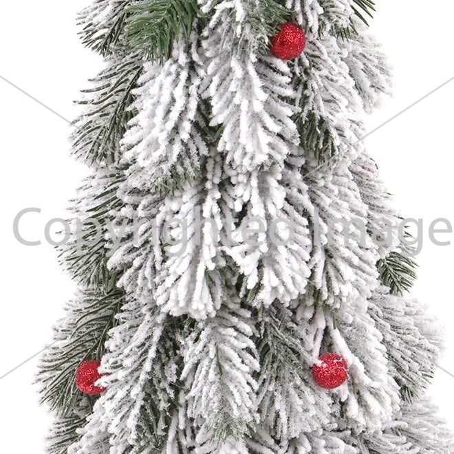 Елка декоративная литая, заснеженная с красными шариками, на деревянной подставке, высотой 62 см. Упаковывается в коробку.