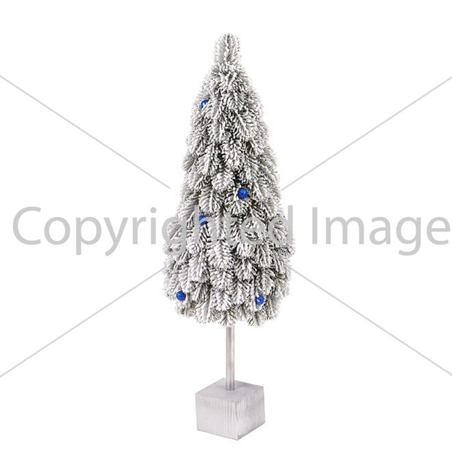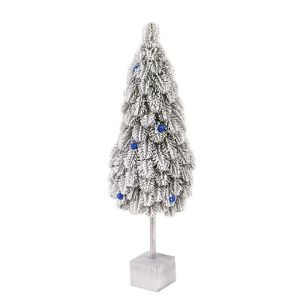 Елка декоративная литая, заснеженная с синими шариками, на деревянной подставке, высотой 62 см. Упаковывается в коробку.