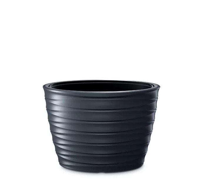 Горшок пластмассовый с вкладом FREZE – исключительно декоративный горшок, вдохновленный традиционной керамикой ручной лепки с поверхностью, обогащенной мягкими волнистыми канавками. Он украсит общественные зоны отдыха, окрестности отелей и резиденций. Это прекрасное дополнение к обустройству террас, зимних садов. Он также демонстрирует повышенную стойкость к солнечному свету и низким температурам, а также высокую устойчивость к механическим повреждениям.