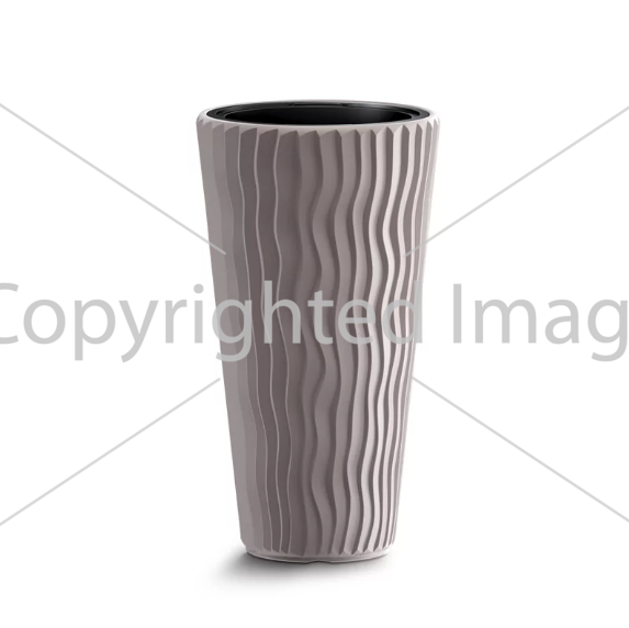 Цветочный горшок Sandy Slim с вкладом - изготовлен из качественного пластика, устойчивого к воздействию солнечных лучей и влаги. Он легок и устойчив, имеет модный дизайн и красивую окраску. Элегантный рифленый узор и приятный глянцевый блеск придают особый шарм и нарядность. Горшок подойдет для декорирования террасы, балкона, кафе или квартиры. Внутренний вклад сделает посадку растения и уход за ней легче и удобнее.