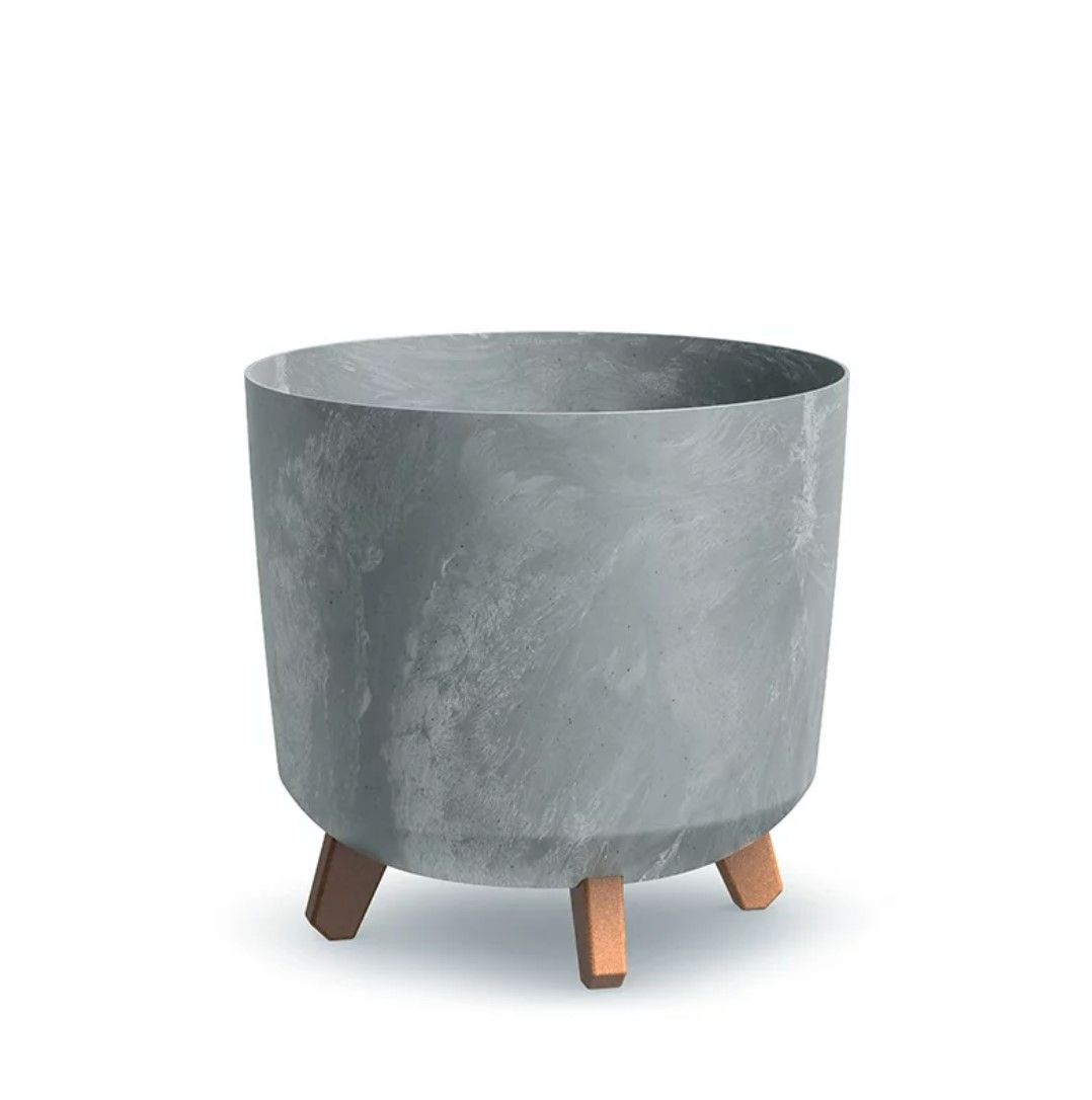 Пластиковый высокий горшок GRACIA TUBUS BETON EFFECT на ножках – идеальный горшок для посадки цветов и растений. Ножки изготовлены из материала ECO, имитирующего дерево. Горшок устойчив к УФ-излучению.