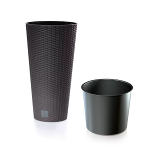 Цветочный горшок Rato Tubus с вкладом - изготовлен из качественного пластика, устойчивого к воздействию солнечных лучей и влаги. Он легок и устойчив, имеет модный дизайн и расцветку в спокойных тонах. Фактура ротанга придает горшку вид натурального изделия, приносит атмосферу тепла и уюта. Он подойдет для декорирования террасы, балкона, кафе или квартиры. Внутренний вклад сделает посадку растения и уход за ней легче и удобнее.