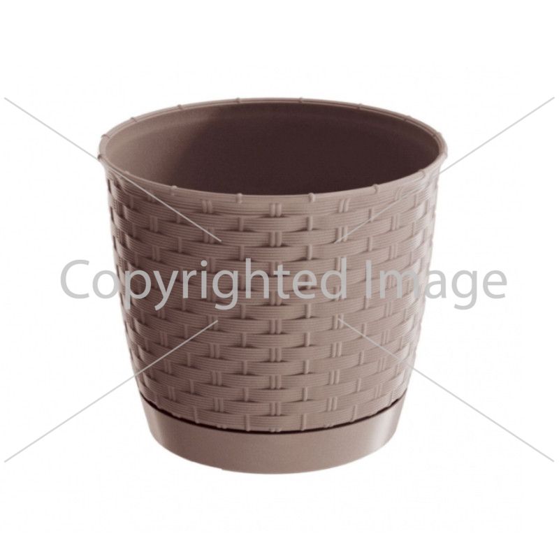 Цветочный горшок Ratolla круглый - изготовлен из качественного пластика, устойчивого к воздействию солнечных лучей и влаги. Он легок и устойчив, имеет модный дизайн и расцветку в спокойных тонах. Фактура ротанга придает горшку вид натурального изделия, приносит атмосферу тепла и уюта. Он подойдет для декорирования террасы, балкона, кафе или квартиры.