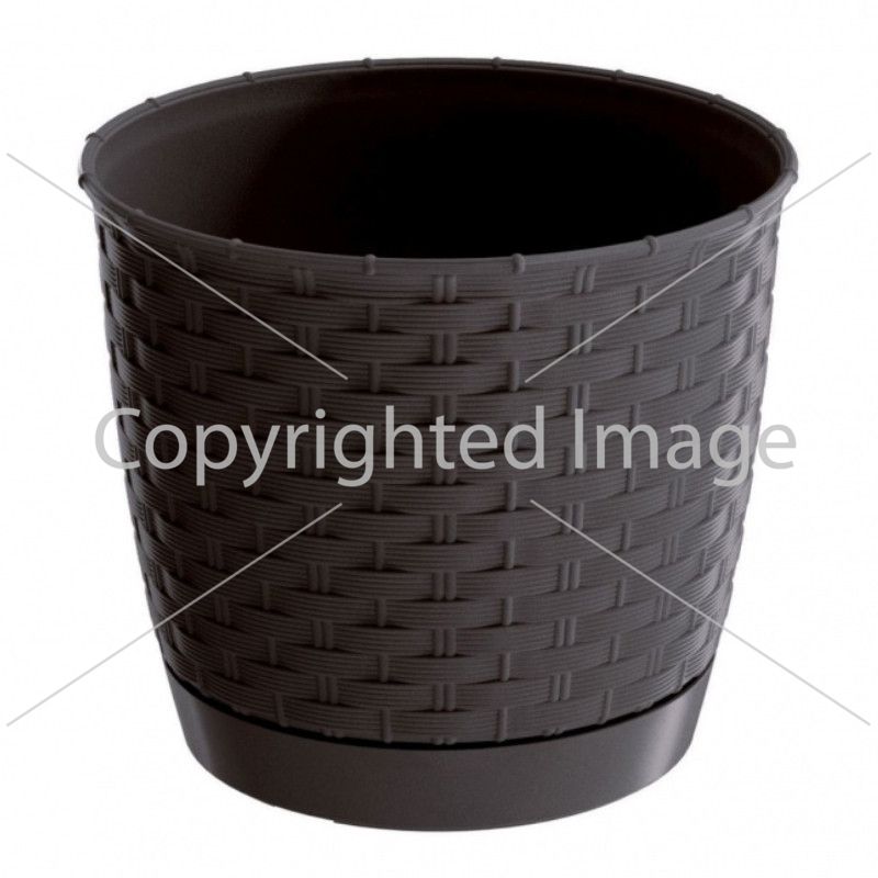Цветочный горшок Ratolla круглый - изготовлен из качественного пластика, устойчивого к воздействию солнечных лучей и влаги. Он легок и устойчив, имеет модный дизайн и расцветку в спокойных тонах. Фактура ротанга придает горшку вид натурального изделия, приносит атмосферу тепла и уюта. Он подойдет для декорирования террасы, балкона, кафе или квартиры.