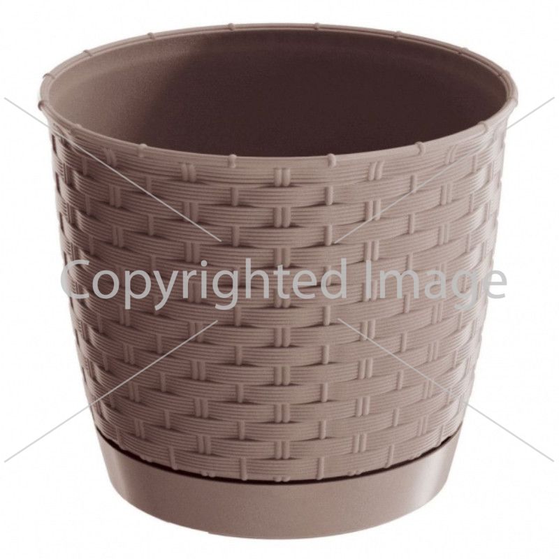 Цветочный горшок Ratolla круглый - изготовлен из качественного пластика, устойчивого к воздействию солнечных лучей и влаги. Он легок и устойчив, имеет модный дизайн и расцветку в спокойных тонах. Фактура ротанга придает горшку вид натурального изделия, приносит атмосферу тепла и уюта. Он подойдет для декорирования террасы, балкона, кафе или квартиры.