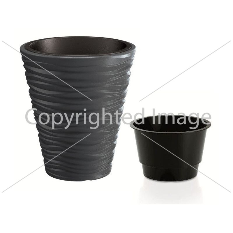 Цветочный горшок Sand с вкладом - изготовлен из качественного пластика, устойчивого к воздействию солнечных лучей и влаги. Он легок и устойчив, имеет модный дизайн и красивую окраску. Элегантный рифленый узор и приятный глянцевый блеск придают особый шарм и нарядность. Горшок подойдет для декорирования террасы, балкона, кафе или квартиры. Внутренний вклад сделает посадку растения и уход за ней легче и удобнее.