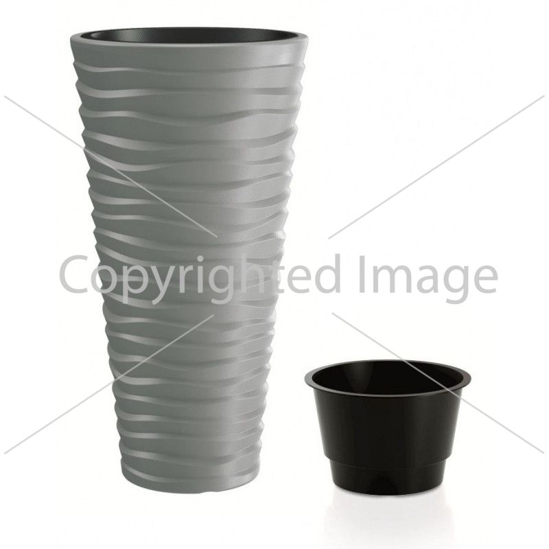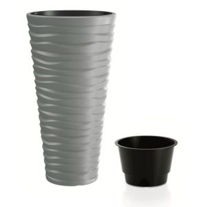 Цветочный горшок Sand slim с вкладом - изготовлен из качественного пластика, устойчивого к воздействию солнечных лучей и влаги. Он легок и устойчив, имеет модный дизайн и красивую окраску. Элегантный рифленый узор и приятный глянцевый блеск придают особый шарм и нарядность. Горшок подойдет для декорирования террасы, балкона, кафе или квартиры. Внутренний вклад сделает посадку растений и уход за ними легче и удобнее.