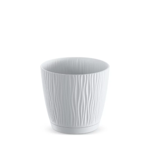Горшок пластмассовый антрацитового цвета из коллекции SANDY с волнообразной поверхностью, сформированной по образцу пустынного песка. Оснащен подставкой с системой самоблокировки.