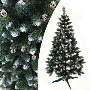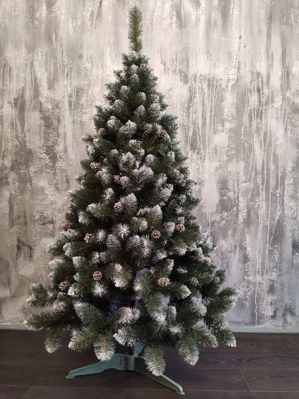 Новогодняя искусственная ель КАРПАТСКАЯ с белыми кончиками и шишками Классика 180 см