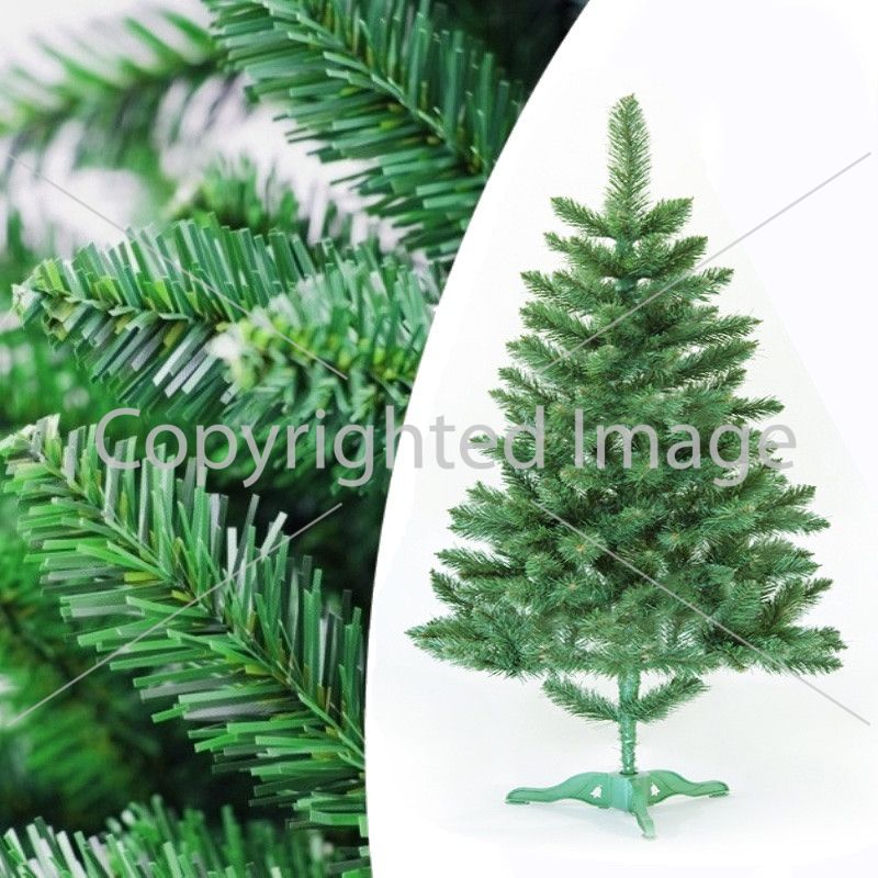 Представленная модель высотой 2.1 метр выполнена из ПВХ зелёного цвета, длина иголочек составляет 4 см. Она имеет конусную форму с нижним диаметром 155 см и достаточное количество пышных веток, на которые свободно помещаются новогодние игрушки.