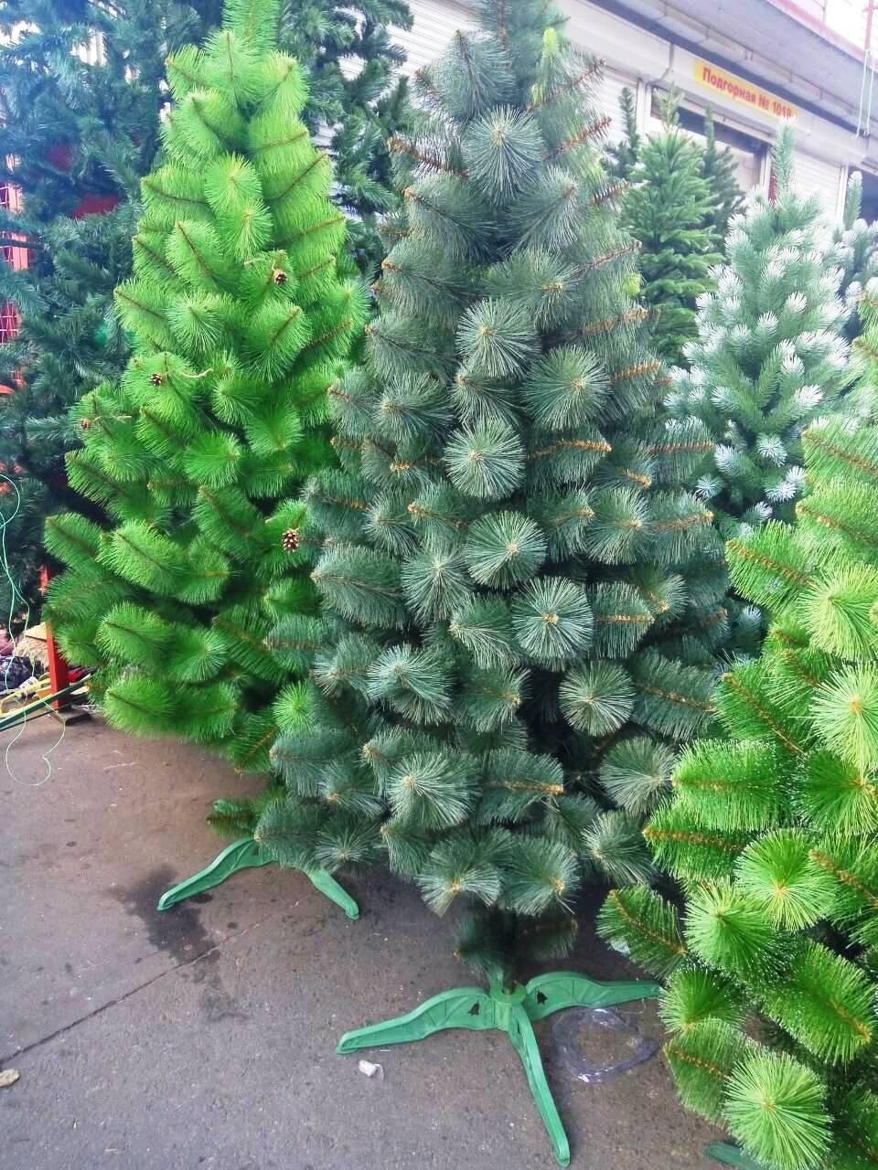 Представленная модель высотой 1,2 метра выполнена из ПВХ тёмно-зелёного цвета, длина иголочек составляет 6 см. Она имеет конусную форму с нижним диаметром 82 см и достаточное количество пышных веток, на которые свободно помещаются новогодние игрушки.