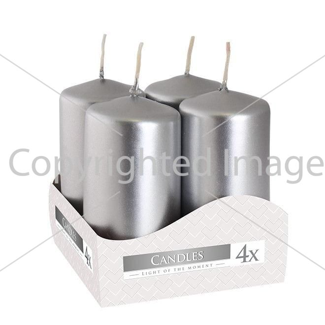 Комплект серебряных свечей Bispol Цилиндр 4х8 см. (4 шт.)