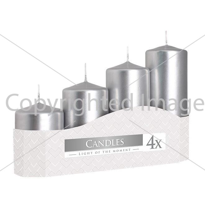 Комплект серебряных свечей Bispol Цилиндр 5х7,9,11,13 см. (4 шт.)