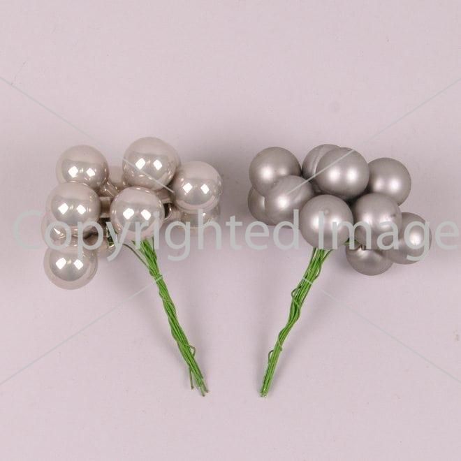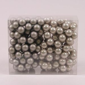 Стеклянные шарики серого цвета на проволоке образуют небольшой пучок, в нем соединились 12 стеклянных шариков. В упаковке два вида пучков 6 с матовыми шариками и 6 с глянцевыми. Такие маленькие стеклянные шарики обязательно пригодятся флористам и декораторам, собрав их в пучок и дополнив ветвями хвои, бусами, лентами или другим декором, они создадут уникальные новогодние украшения!