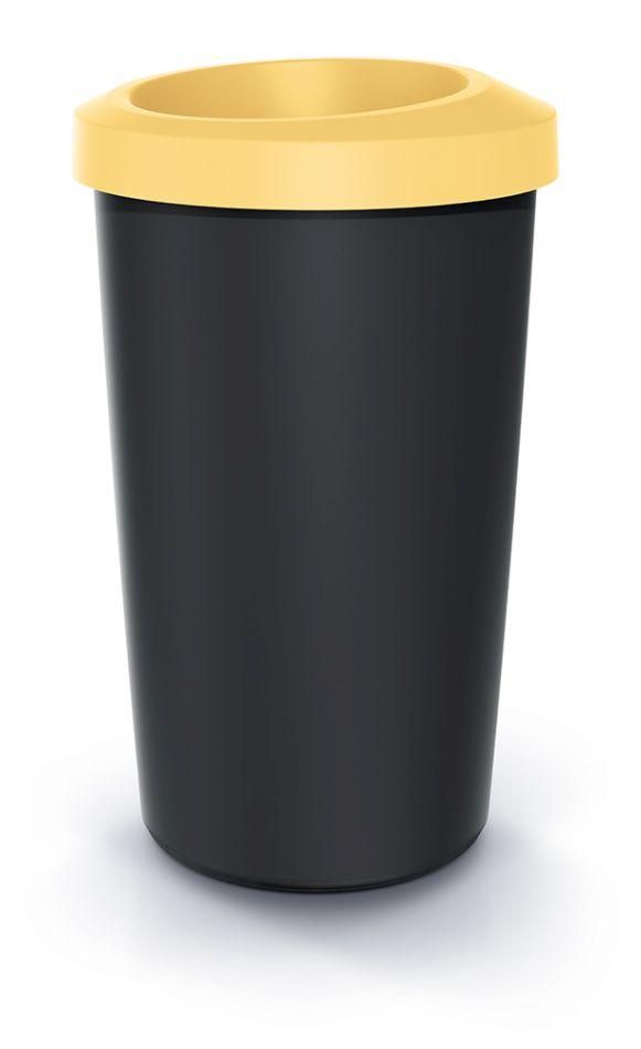 Мусорка Prosperplast Compacta Q круглая с открытой крышкой 45л черная с Желтым ободком