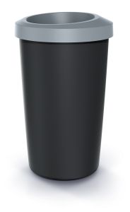 Мусорка Prosperplast Compacta Q круглая с открытой крышкой 45л черная Серый ободок