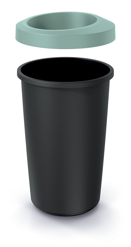 Мусорка Prosperplast Compacta Q круглая с открытой крышкой 45л черная Зеленый ободок