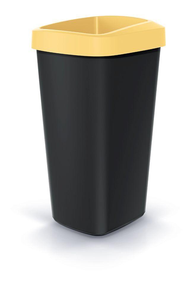 Мусорка Prosperplast Compacta Q прямоугольная с открытой крышкой 25л черная c Желтым ободком