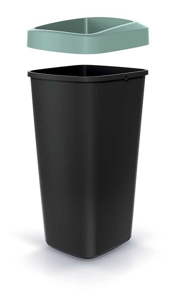 Мусорка Prosperplast Compacta Q прямоугольная с открытой крышкой 25л черная Зеленый ободок