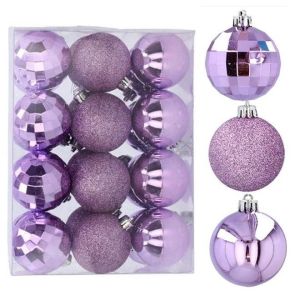 Набор пластиковых елочных шаров, цвет – фиолетовый, 24 шт. диаметром – 5 см: 8 шт. - глянец, 8 шт. – глиттер, 8 шт. – фигурный.