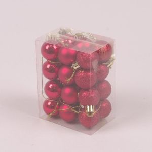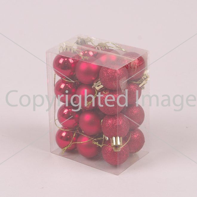 Набор пластиковых елочных шаров, цвет – красный, 24 шт. диаметром – 3 см: 8 шт. - глянец, 8 шт. – глиттер, 8 шт. – матовый.