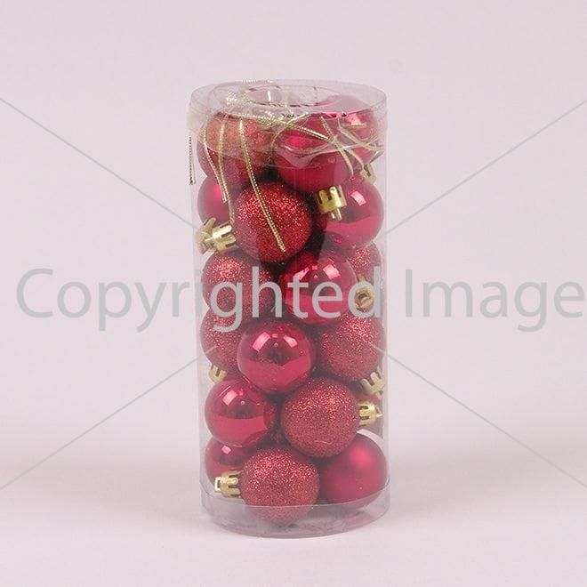 Набор пластиковых красных новогодних шаров 24 шт. D-3 см 44665
