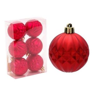 Набор пластиковых красных новогодних шаров 6 шт. D-6 см. 43090