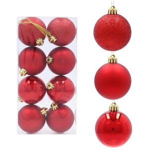 Набор пластиковых елочных шаров, цвет – красный, 8 шт. диаметром – 5 см: глянцевый – 2 шт. матовый – 4 шт. глиттер – 2 шт.