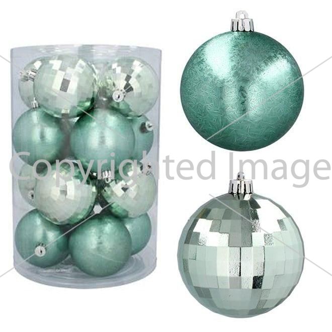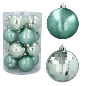 Набор пластиковых мятных новогодних шаров 16 шт. D-8 см. 43071