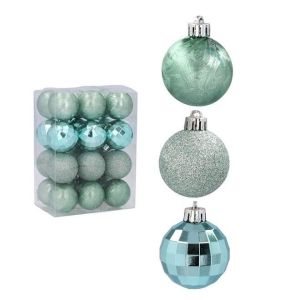 Набор пластиковых елочных шаров, цвет – мятный, 24 шт. диаметром – 4 см: 6 шт. - глиттер, 12 шт. – матовый, 6 шт. – фигурный.