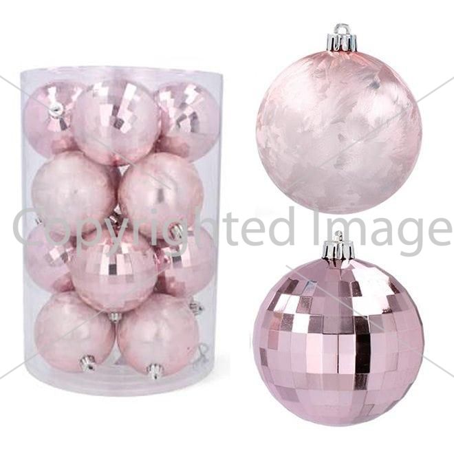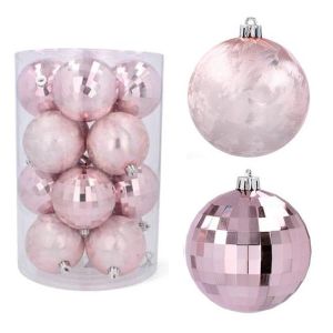 Набор пластиковых елочных шаров, цвет – розовый, 16 шт. диаметром – 8 см: 8 шт. - фигурный глянцевый, 8 шт. – матовый.