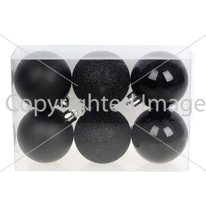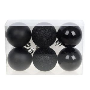 Набор елочных шариков 6 см, цвет – черный оникс, 6 шт: глянец, глитер, матовый – по 2 шт.