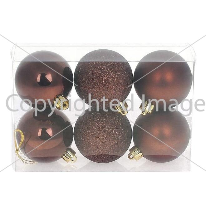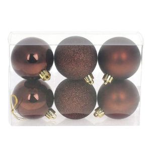 Набор елочных шариков 6 см, цвет – темный шоколад, 6 шт: глянец, глиттер, матовый – по 2 шт.