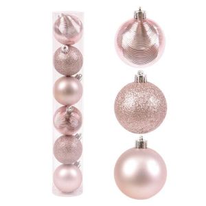 Набор пластиковых елочных шаров, цвет – розовый, 6 шт. диаметром – 6 см: фигурный глянцевый – 2 шт. матовый – 2 шт. глиттер – 2 шт.