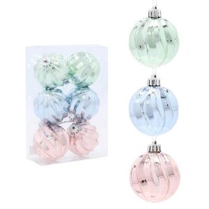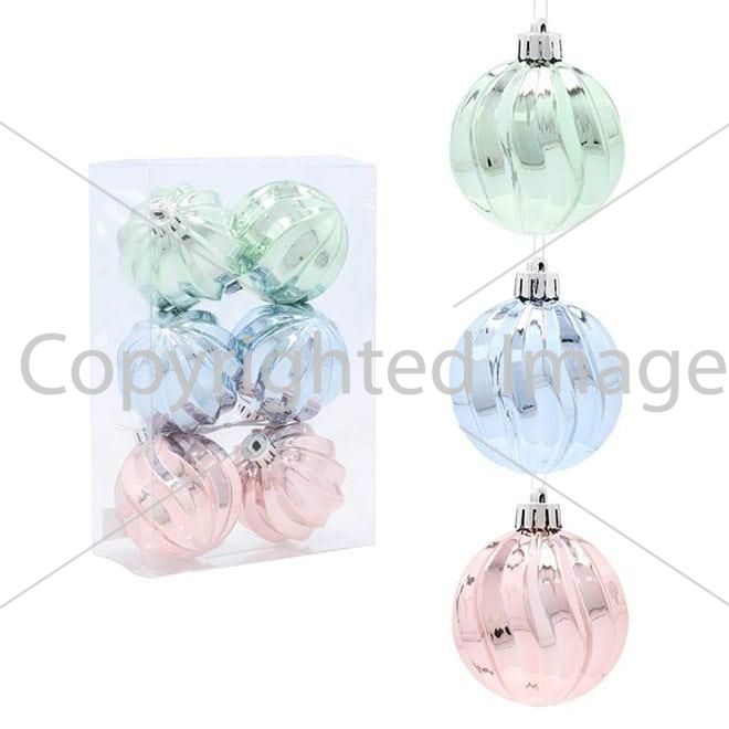 Набор пластиковых елочных шаров, цвет – розовый фигурный глянец – 2 шт. зеленый фигурный глянец – 2 шт. голубой фигурный глянец – 2 шт. диаметром – 6 см