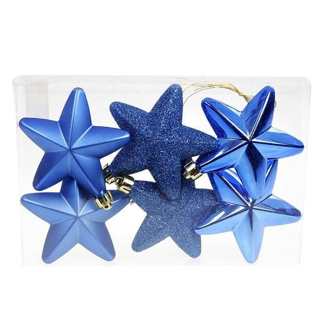 Набор елочных украшений Звездочки 7.5 см, цвет – королевский синий, 6 шт: глянец, матовый, глиттер – по 2 шт.