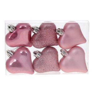 Набор елочных украшений Сердечка 6 см, цвет – розовый фламинго, 6 шт.: перламутр, матовый, глиттер – по 2 шт.