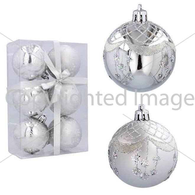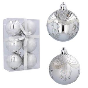 Набор пластиковых серебряных новогодних шаров 6 шт. D-8 см. 43016