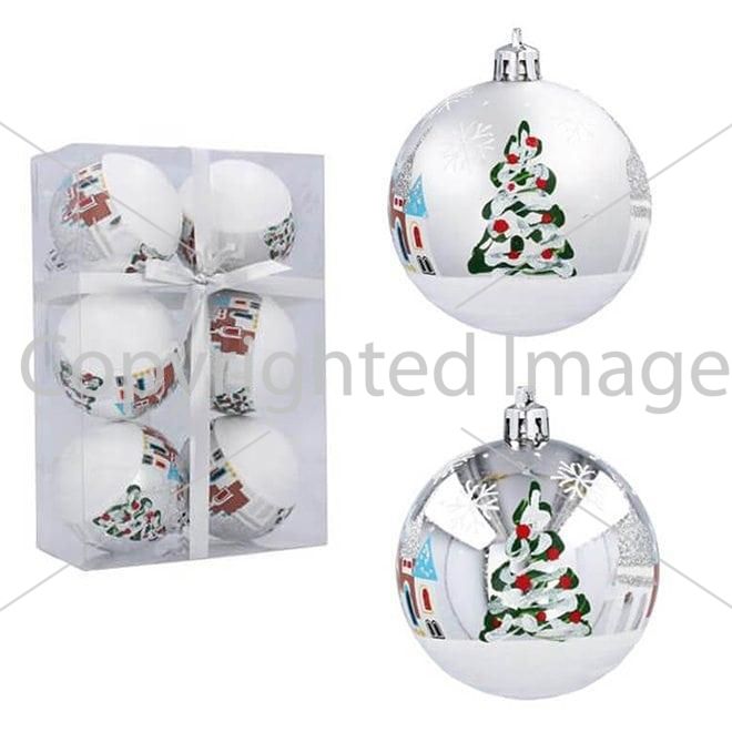 Набор пластиковых серебряных новогодних шаров 6 шт. D-8 см. 43018