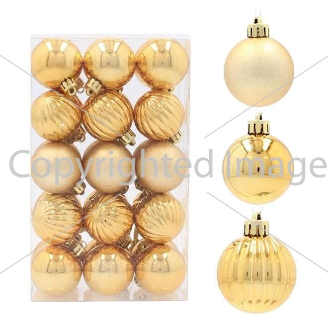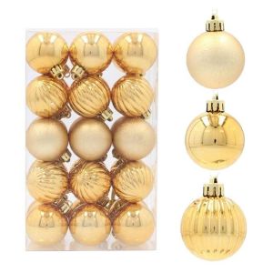 Набор пластиковых елочных шаров, цвет – золотой, 30 шт. диаметром – 4 см: 12 шт. - глянец, 12 шт. – фигурный, 6 шт. – матовый.