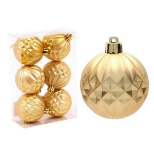 Набор пластиковых елочных шаров, цвет – золотой, 6 шт. диаметром – 6 см: 6 шт. – фигурный матовый.